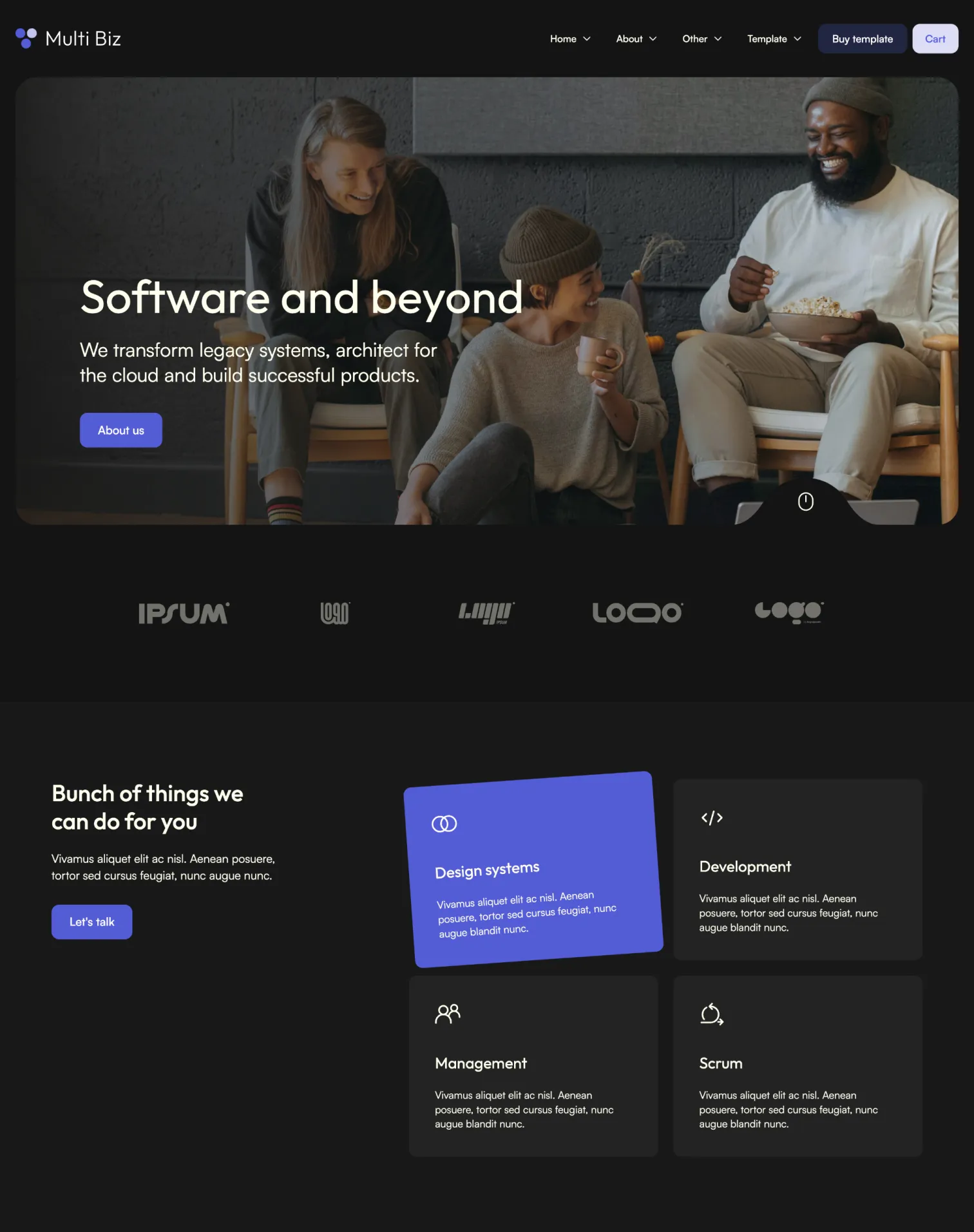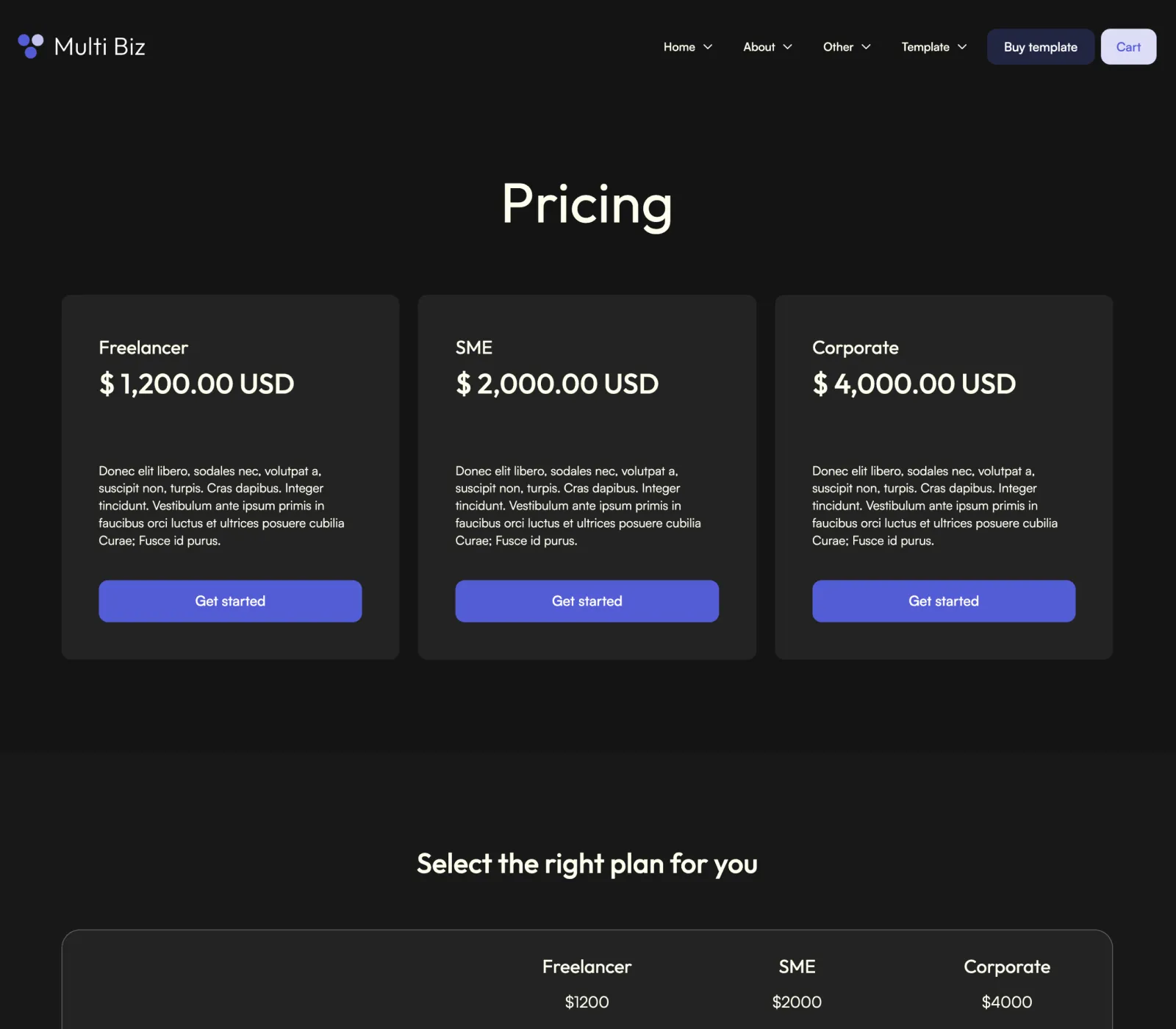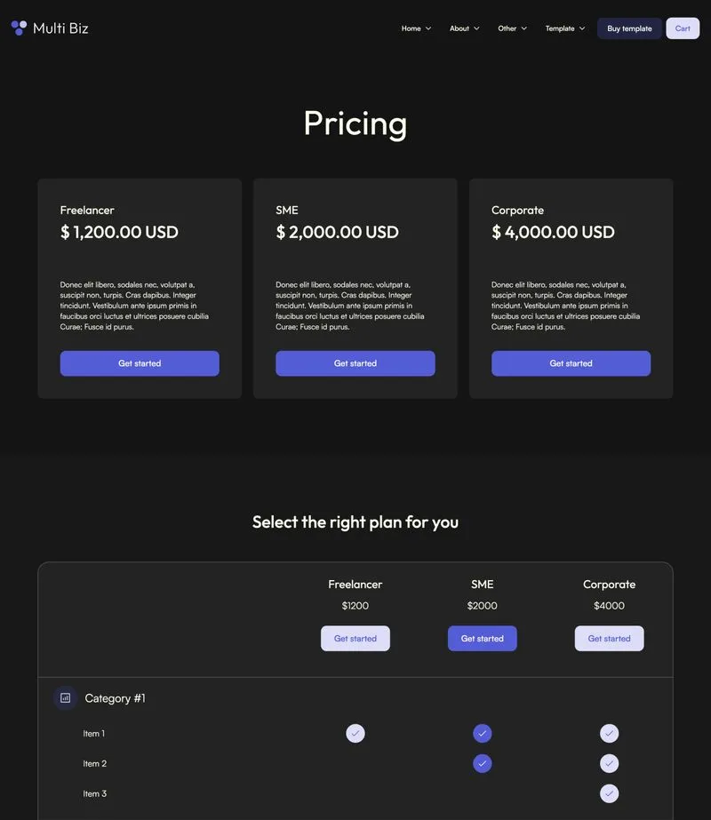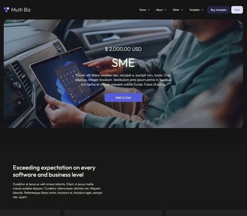Multi Biz Template comes with eCommerce set up, so you can start selling your services straight away.