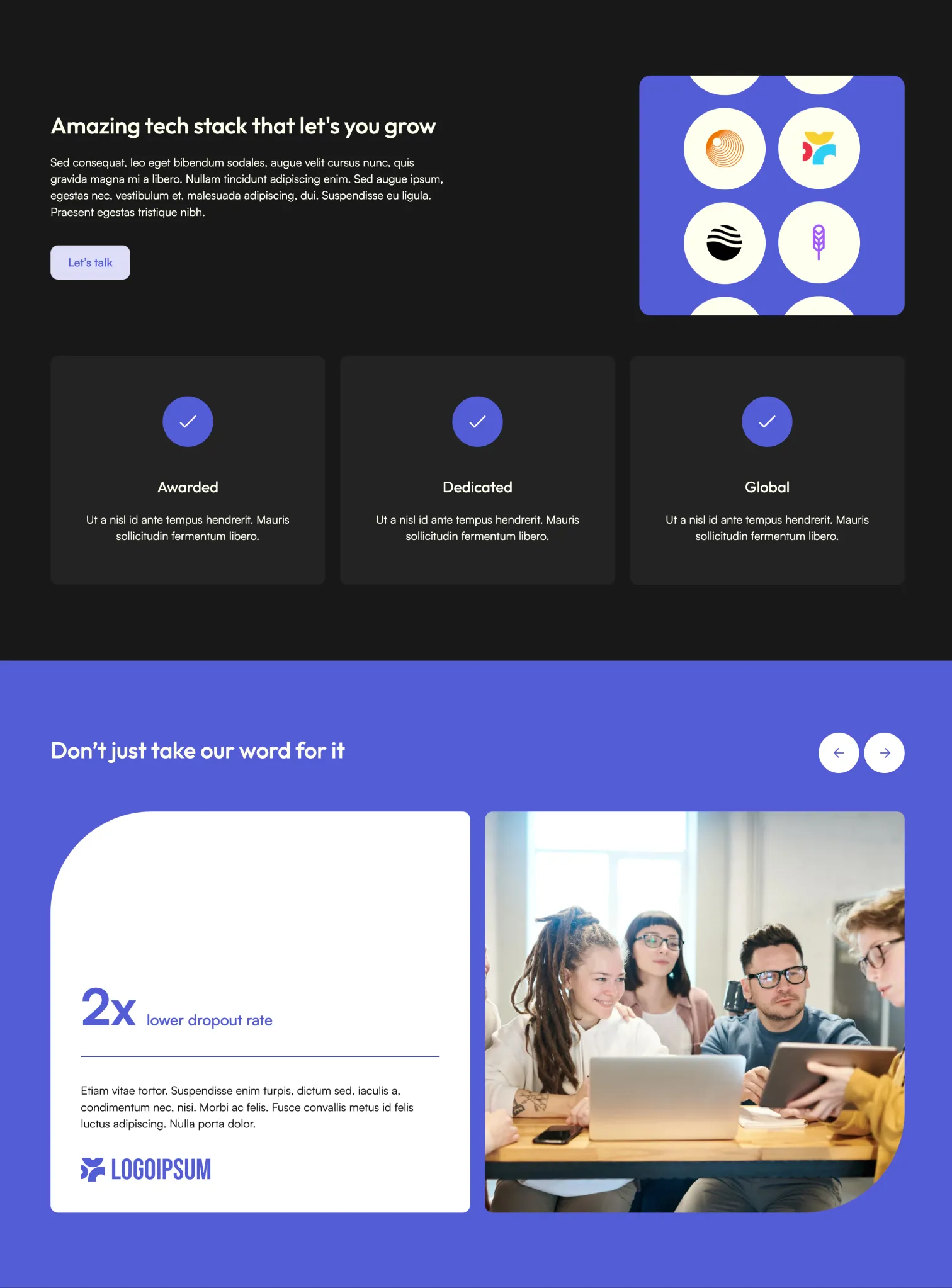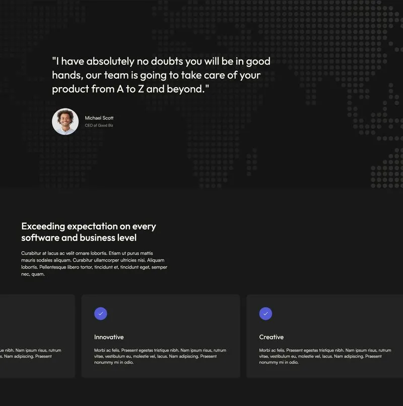 Our template is modular, meaning you can combine different sections as well as single elements, like buttons, images, etc. with each other without losing on consistency of the design. Long story short, different elements will always look good together.