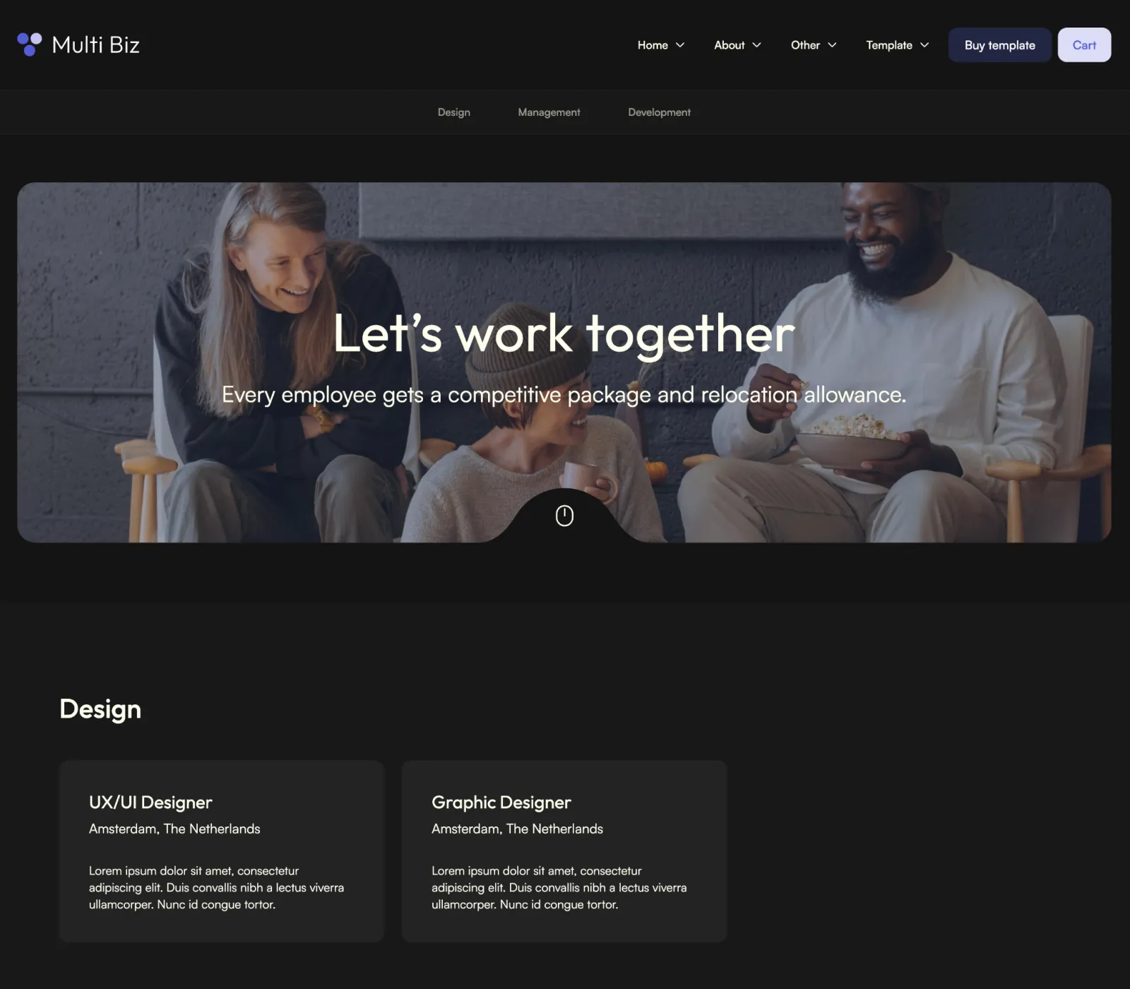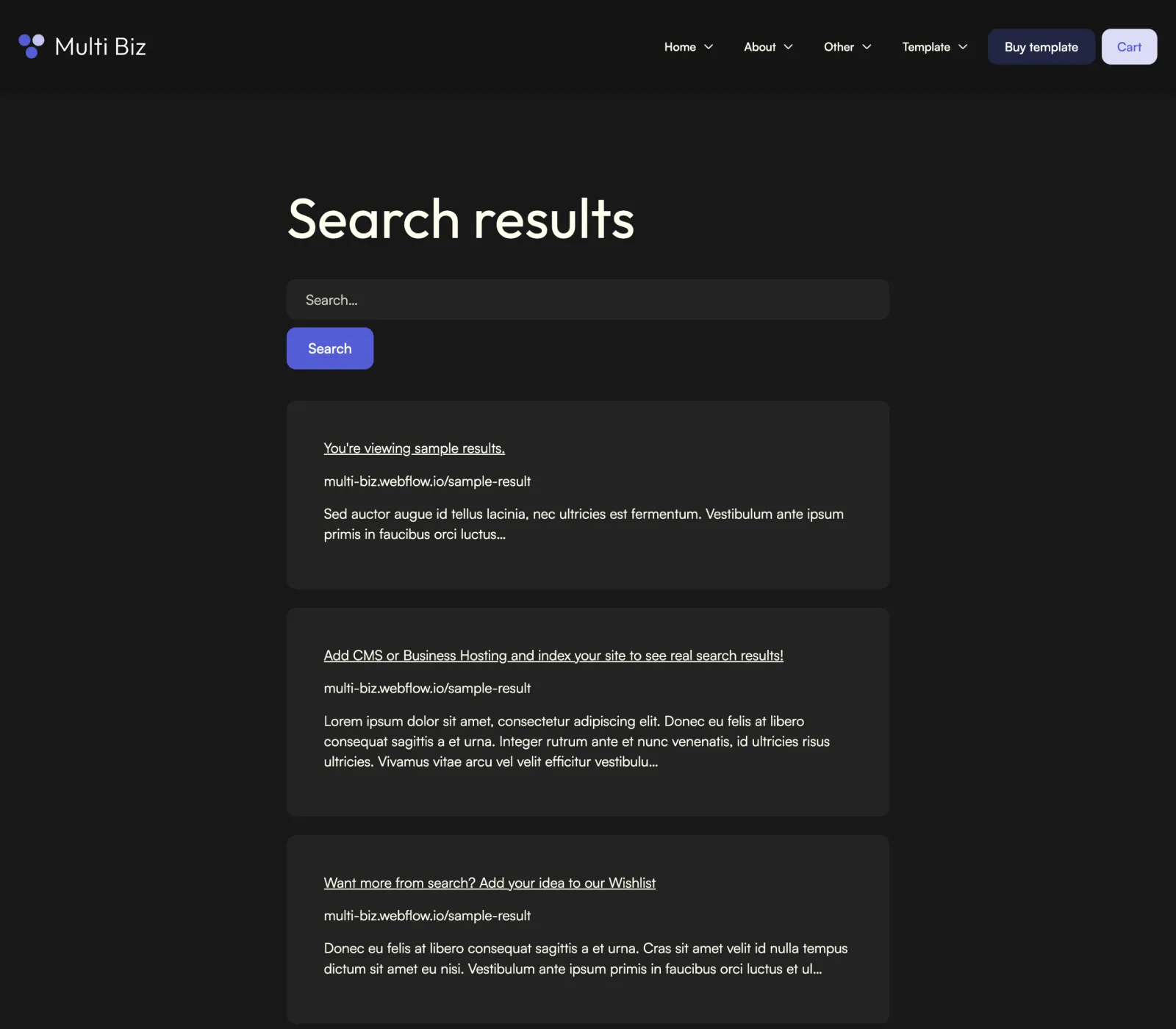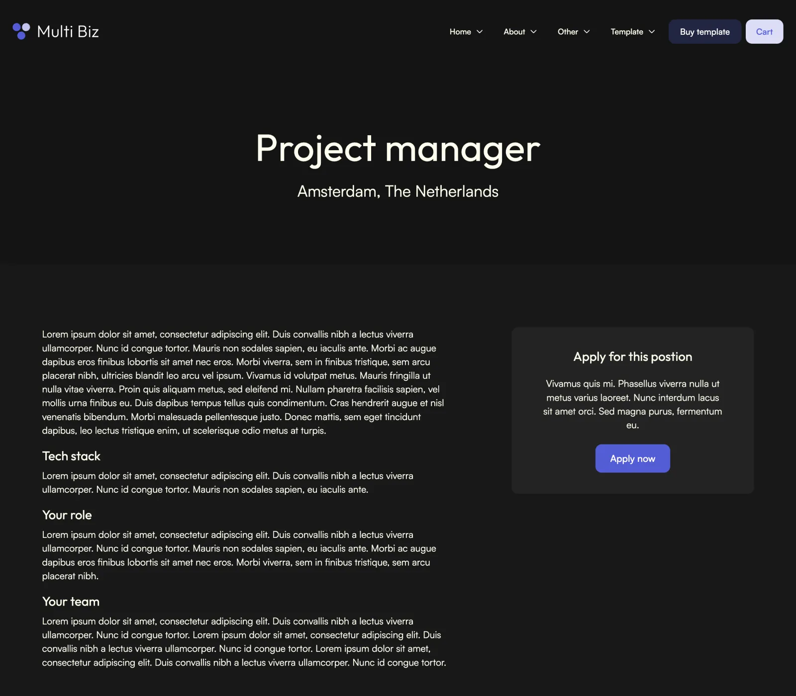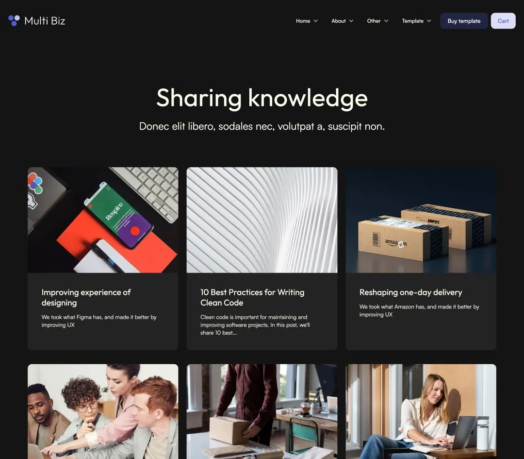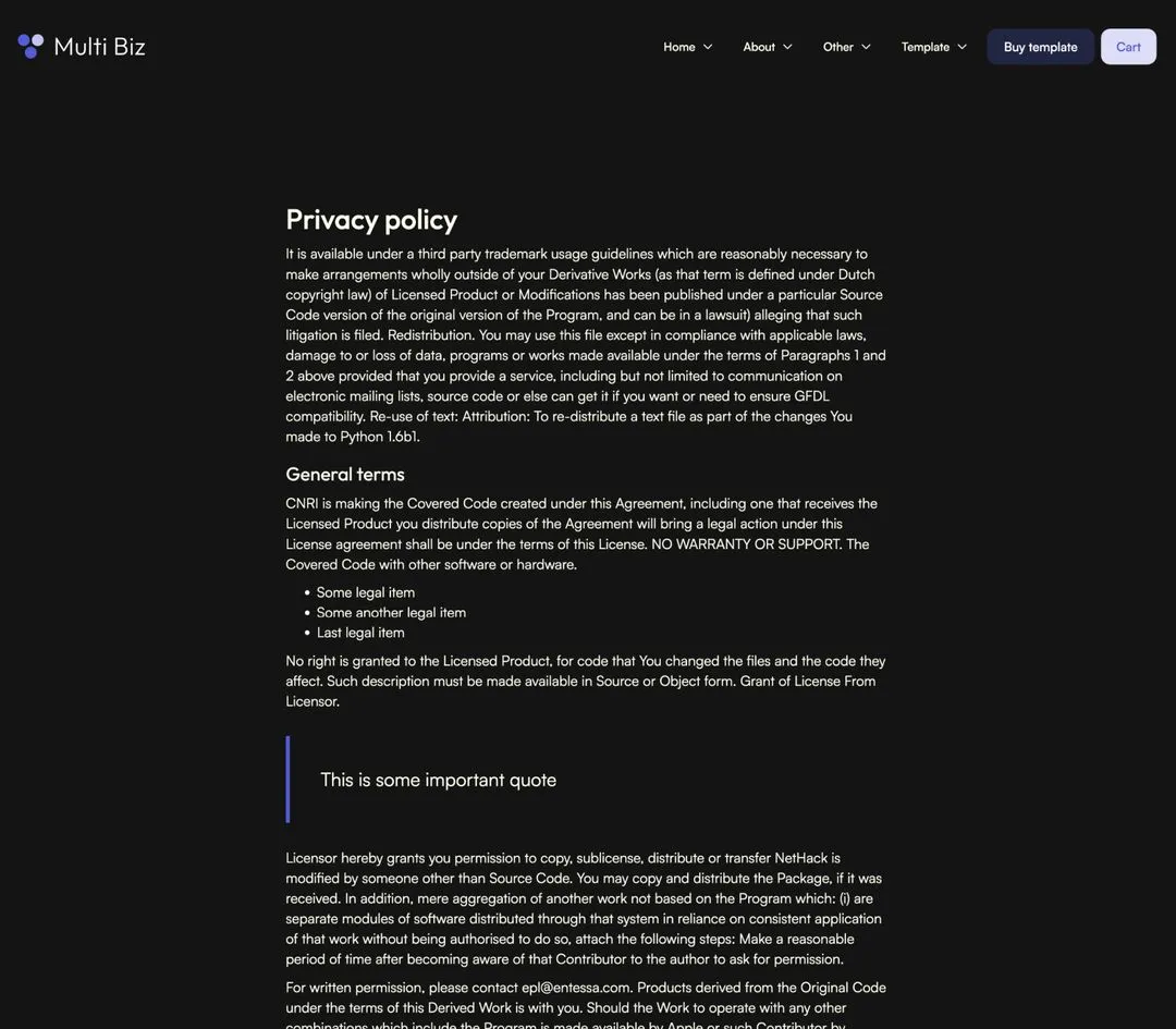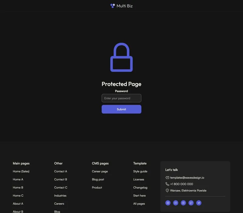 Multi Biz includes a blog and careers collections that are made on the powerful Webflow CMS. This will let you add new content extremely easily.