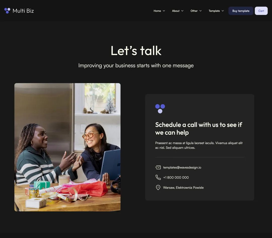 Multi Biz is optimized to offer a frictionless experience on every screen. No matter how you combine our sections, they will look good on desktop, tablet, and phone.